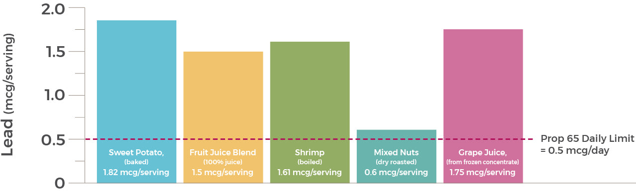 While it is important to pay attention to all product warnings, the standards for Proposition 65 warnings are very strict and are based on very low levels of exposure. The amounts established by Proposition 65 for these heavy metals can be less than what occurs naturally in unprocessed foods like fresh fruits and nuts.